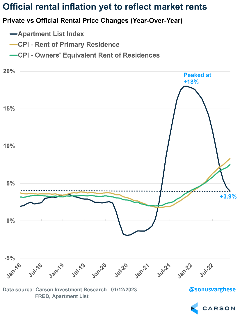 The good news is market rents are decelerating quite rapidly. Data from Apartment List showed rents have declined for four consecutive months. Rents fell 0.8% in December, which is the largest month-over-month decline ever seen in December.