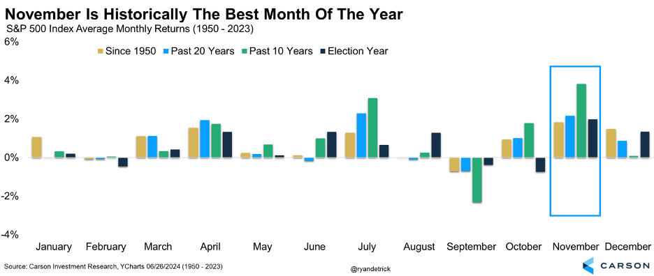 • Although election volatility this week is quite possible, the good news is November is historically one of the best months of the year
