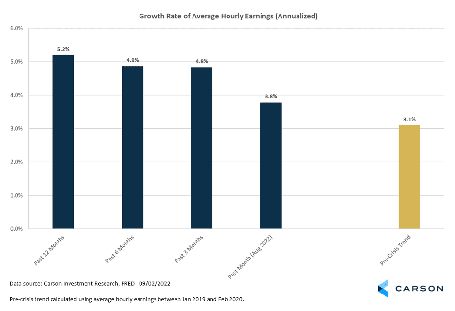 Slower wage growth is not great news if you are employed, especially considering the high levels of inflation. Falling gas prices are providing some relief; but from the Fed’s perspective, the best news in the August payroll report was that wage growth slowed.